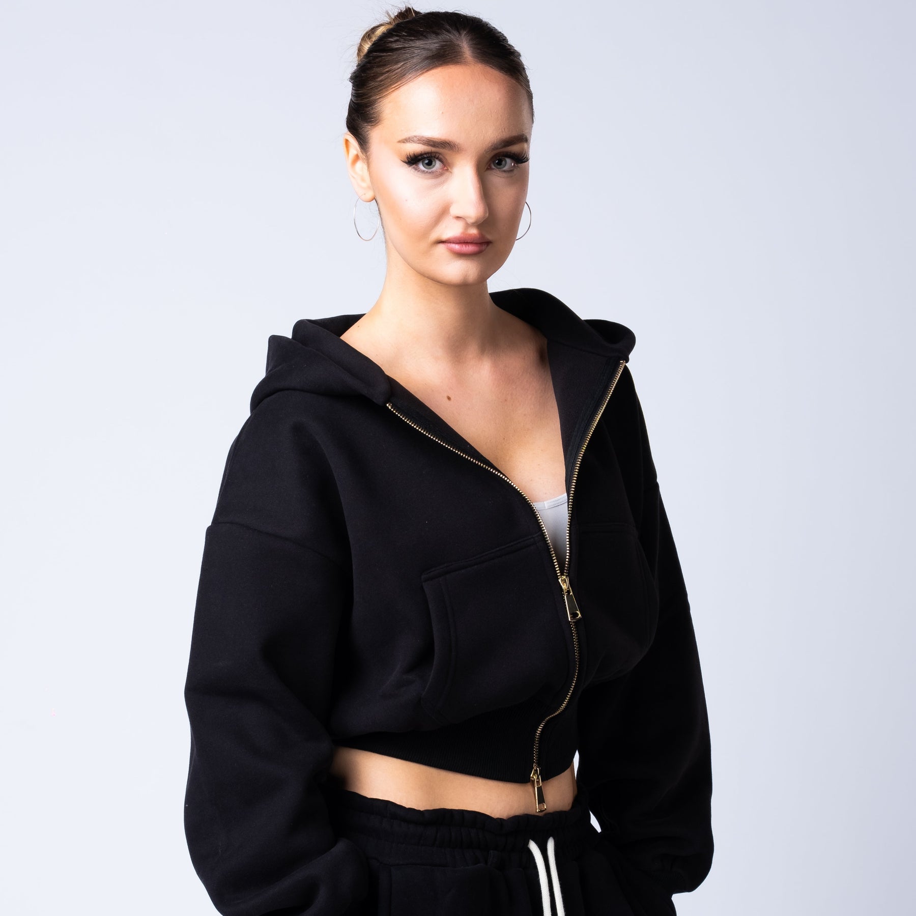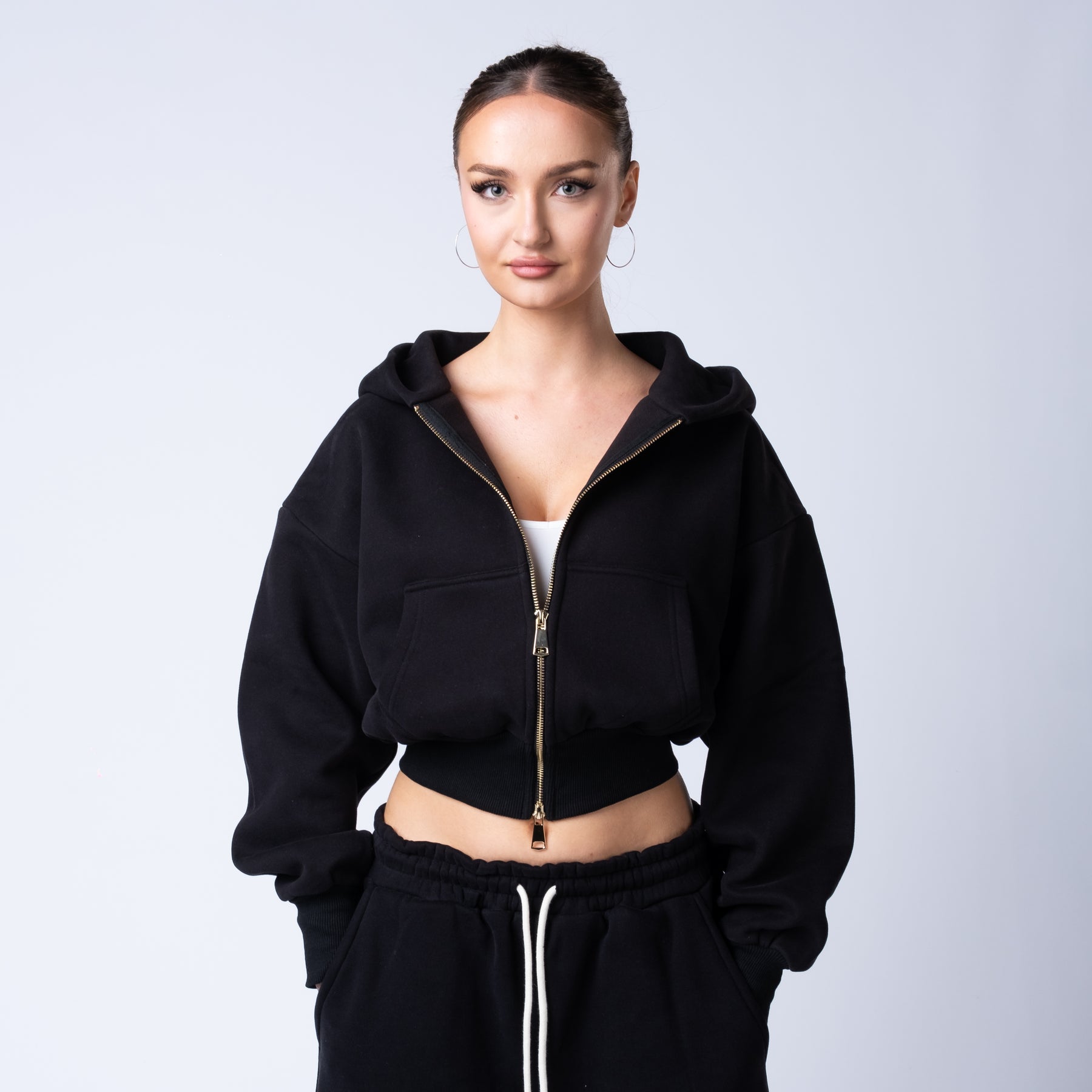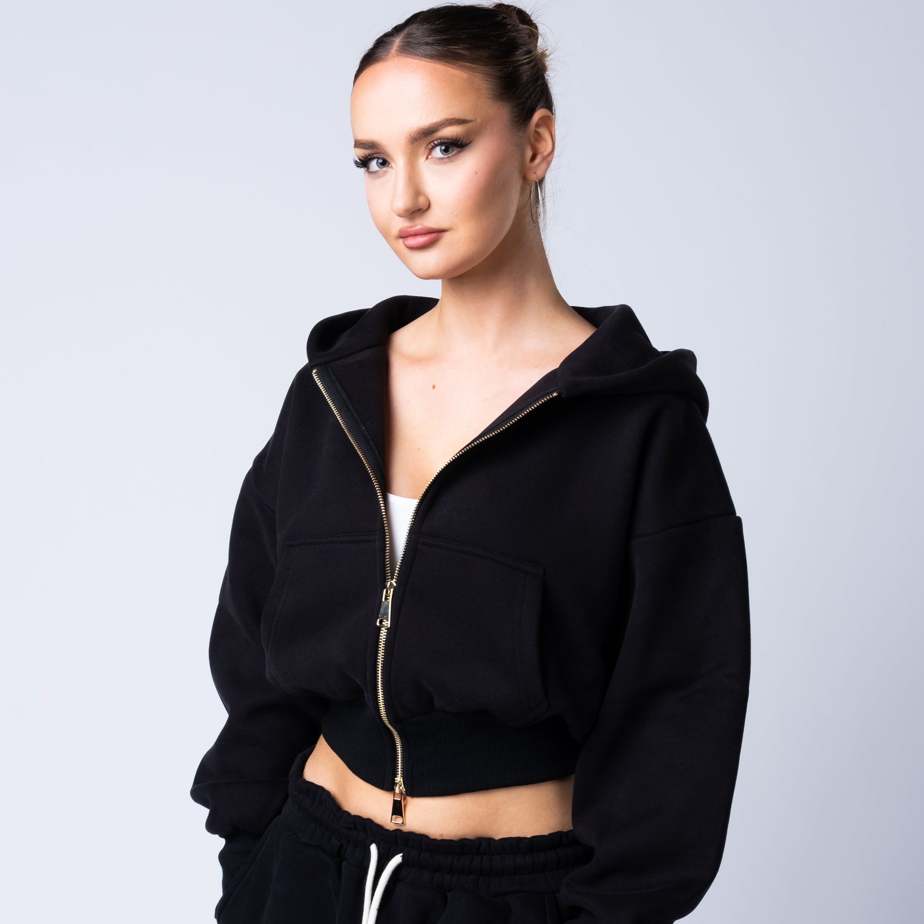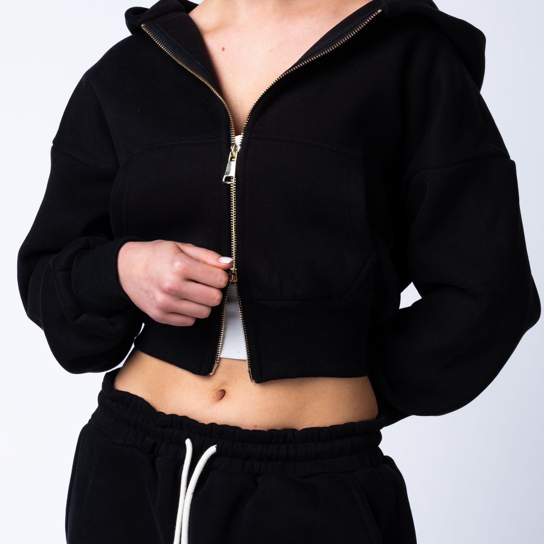 Functional front and back pockets provide everyday utility, and the gold zip detail adds a luxury finish that sets the collection apart.