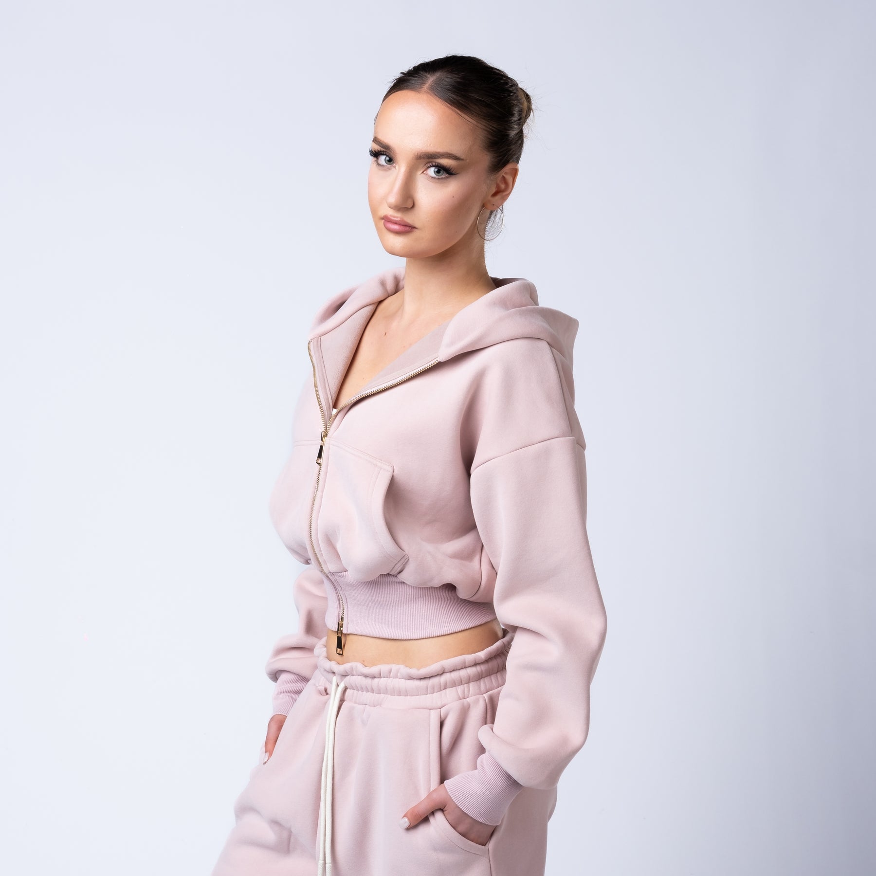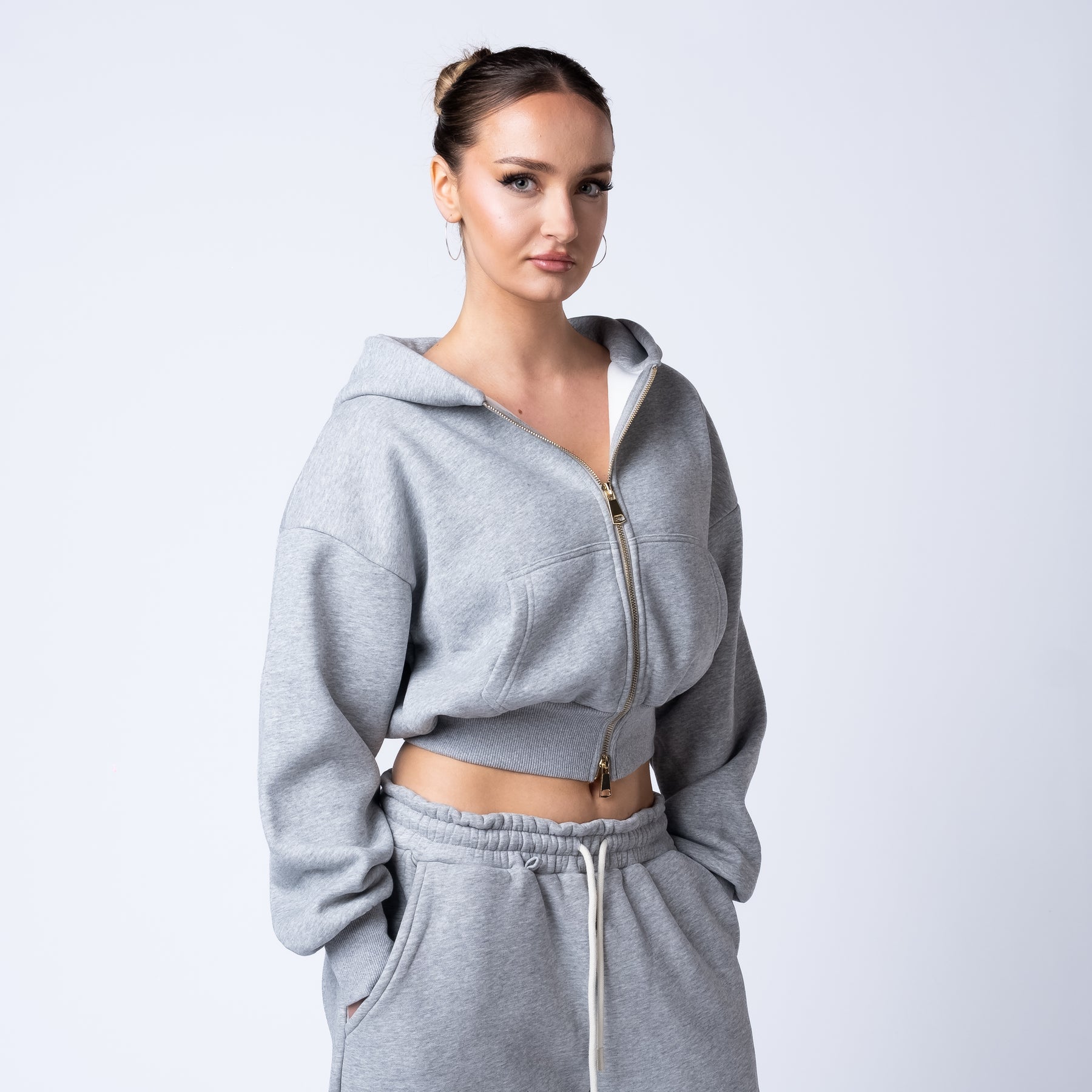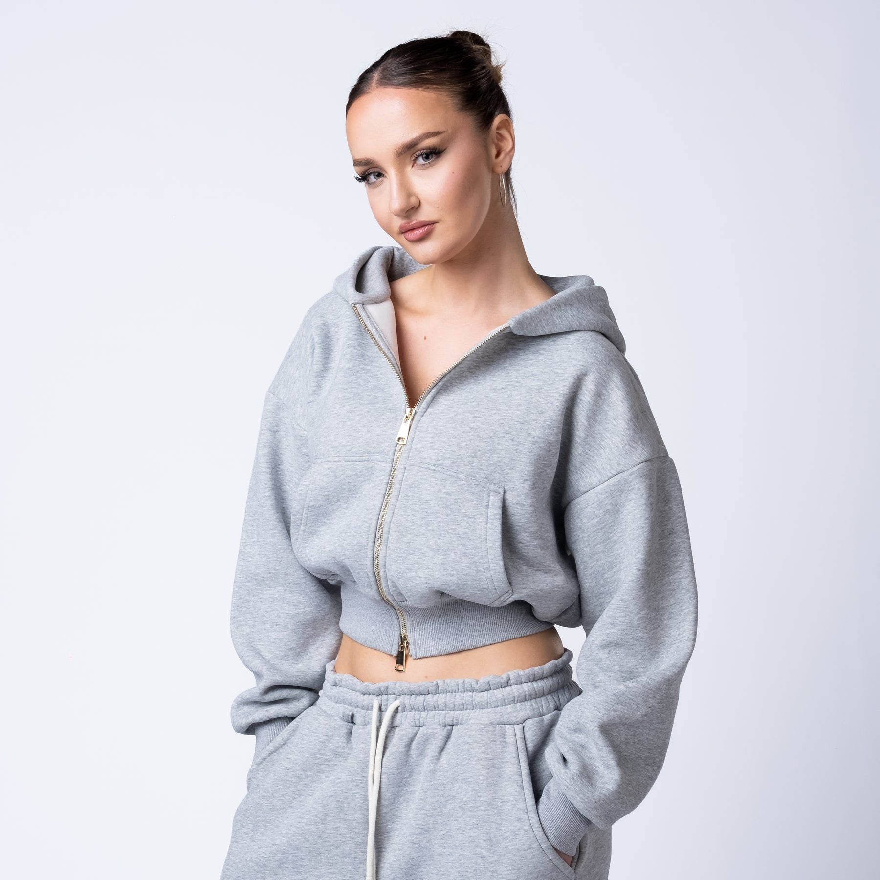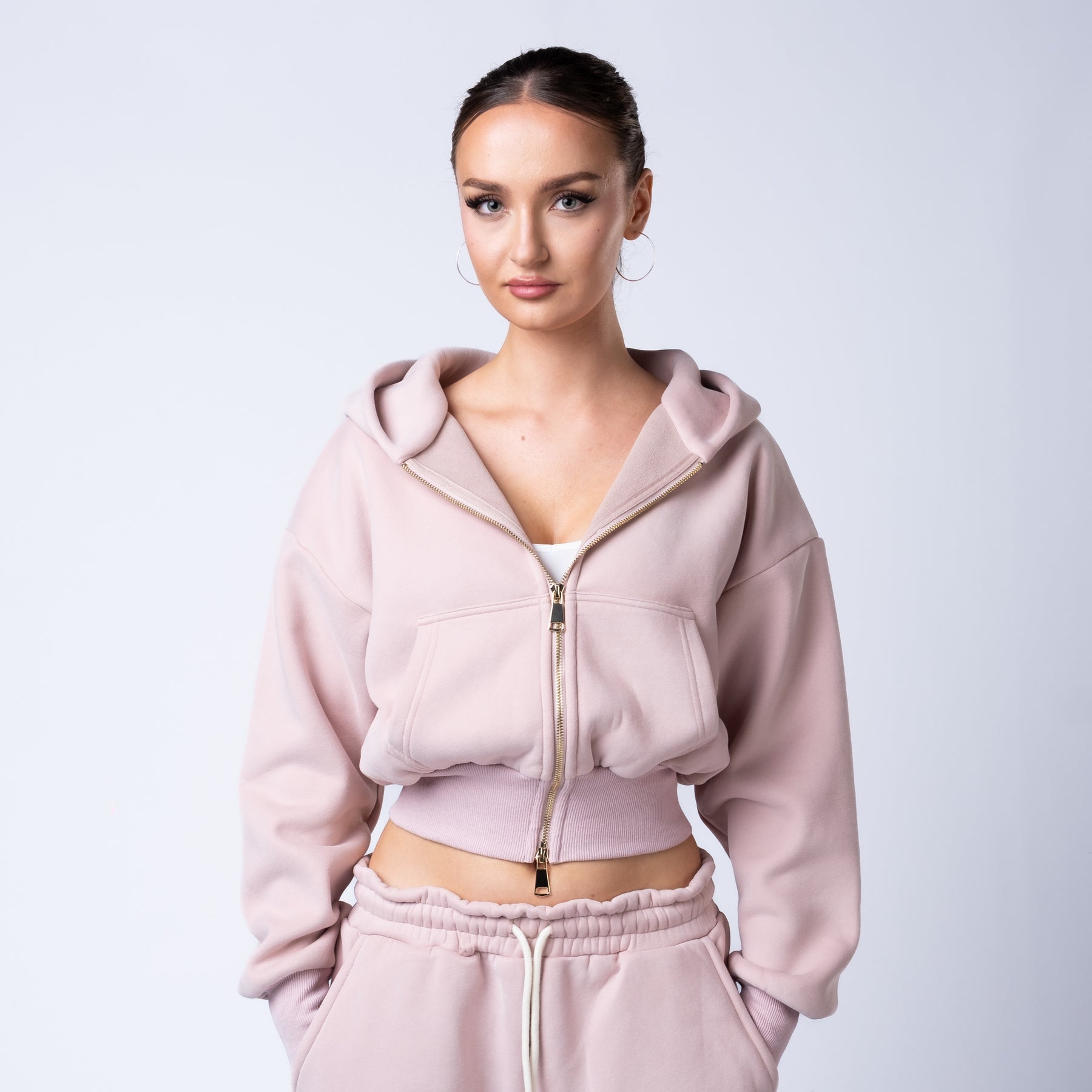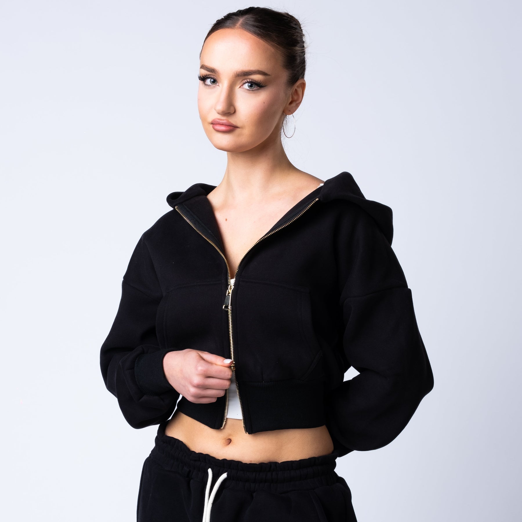 Functional front and back pockets provide everyday utility, and the gold zip detail adds a luxury finish that sets the collection apart.