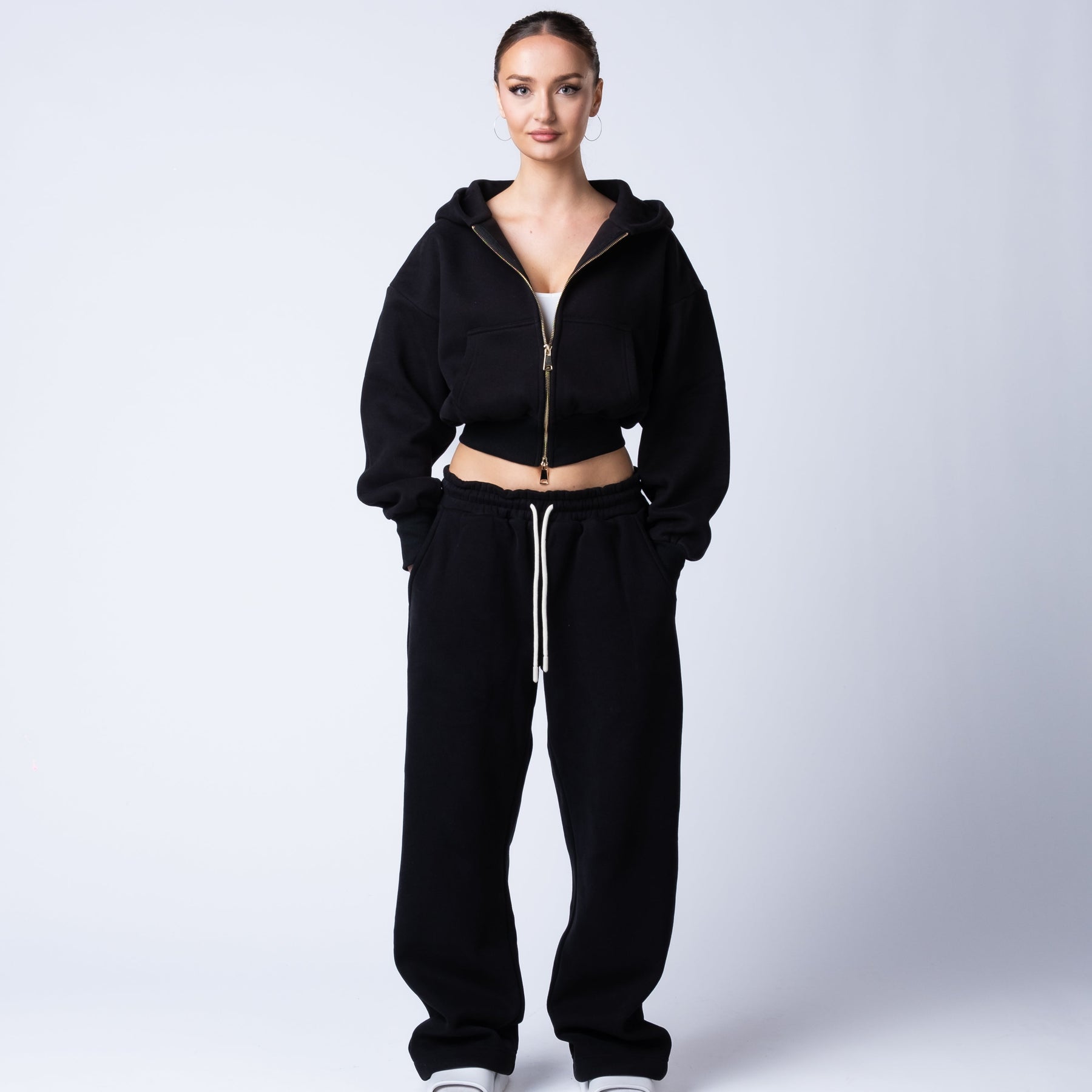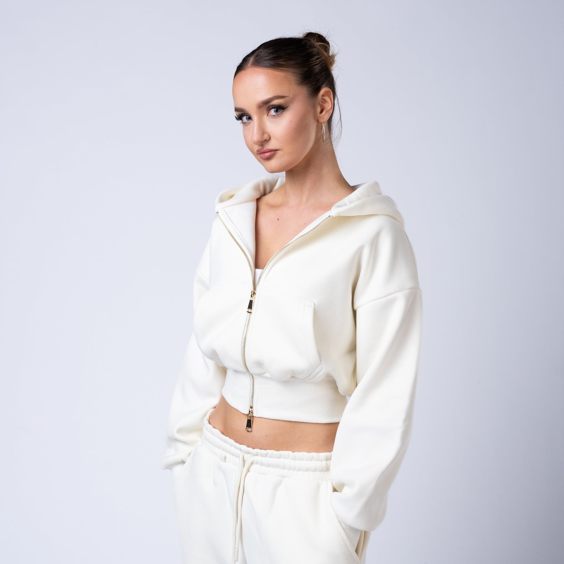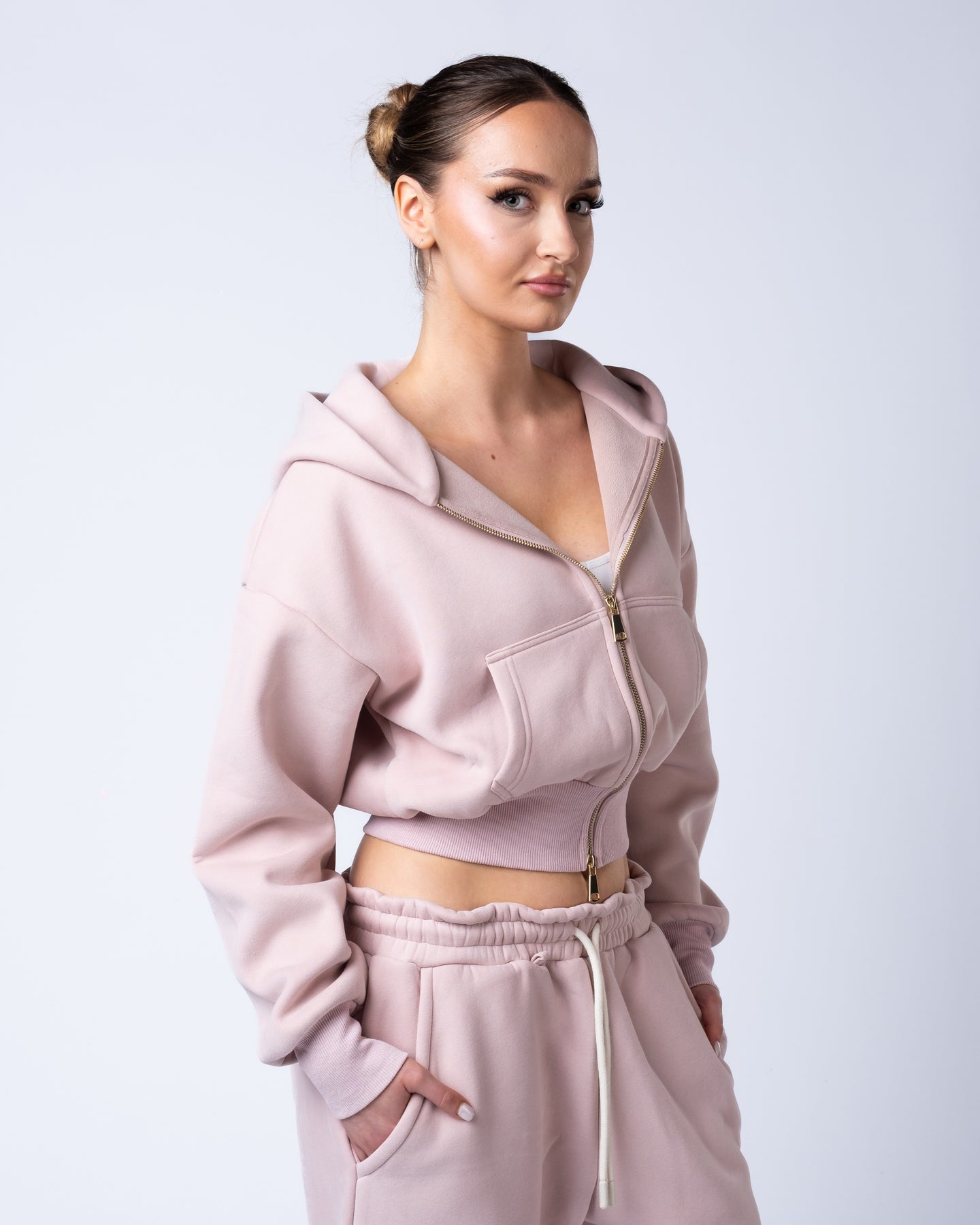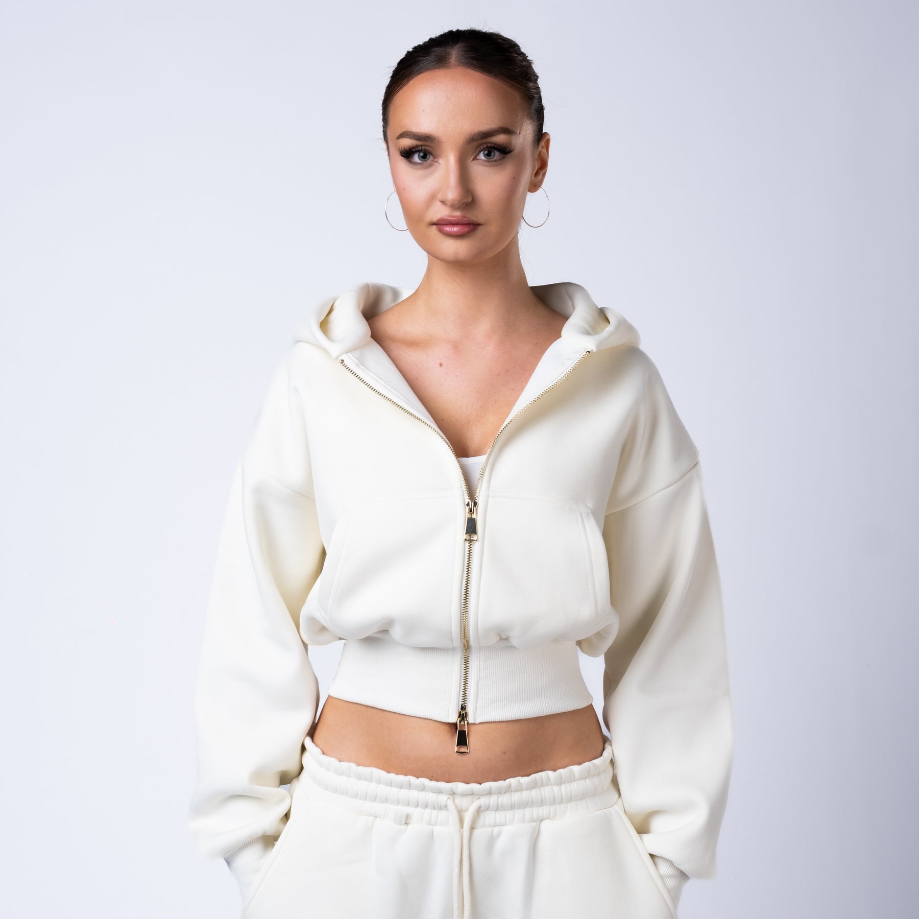 Functional front and back pockets provide everyday utility, and the gold zip detail adds a luxury finish that sets the collection apart.