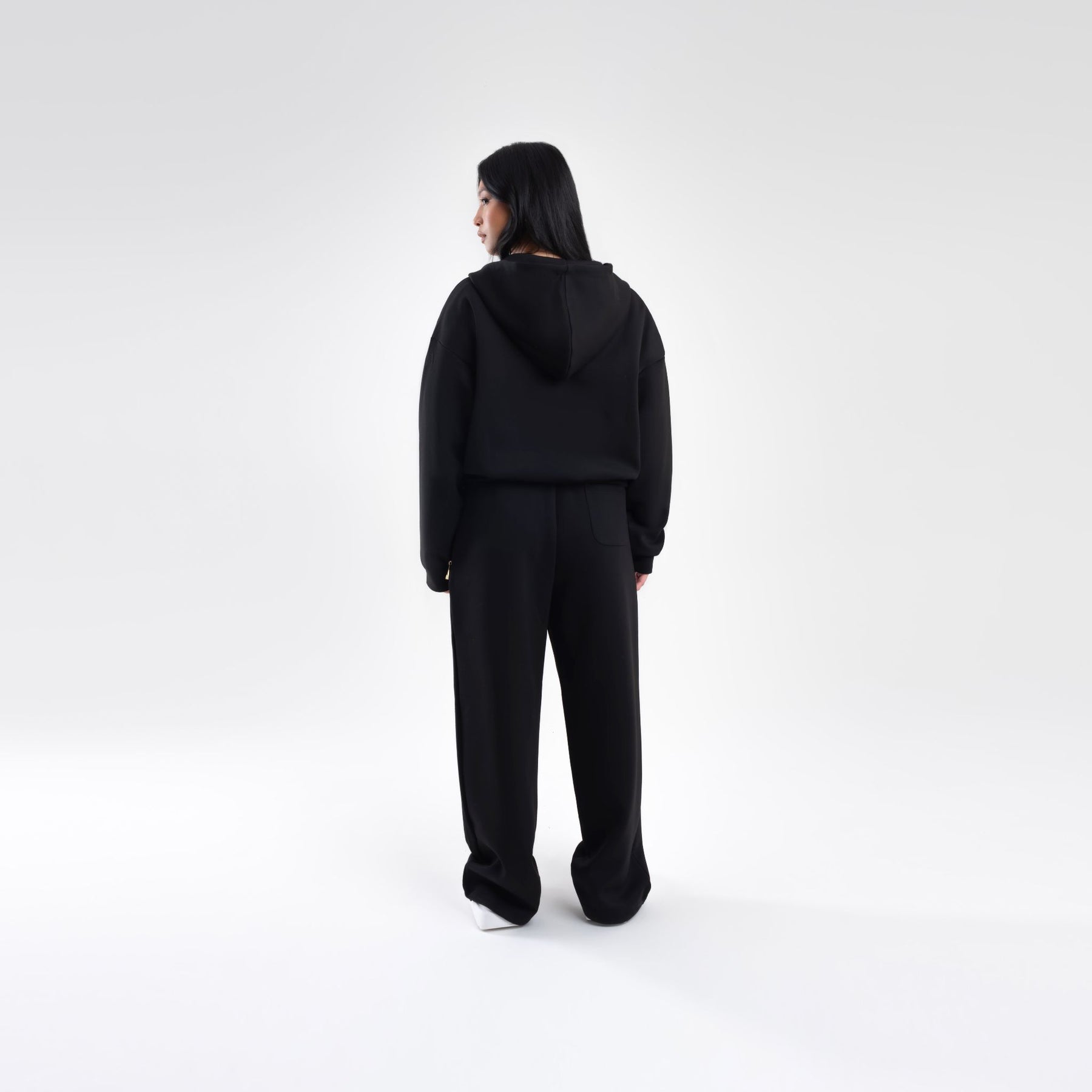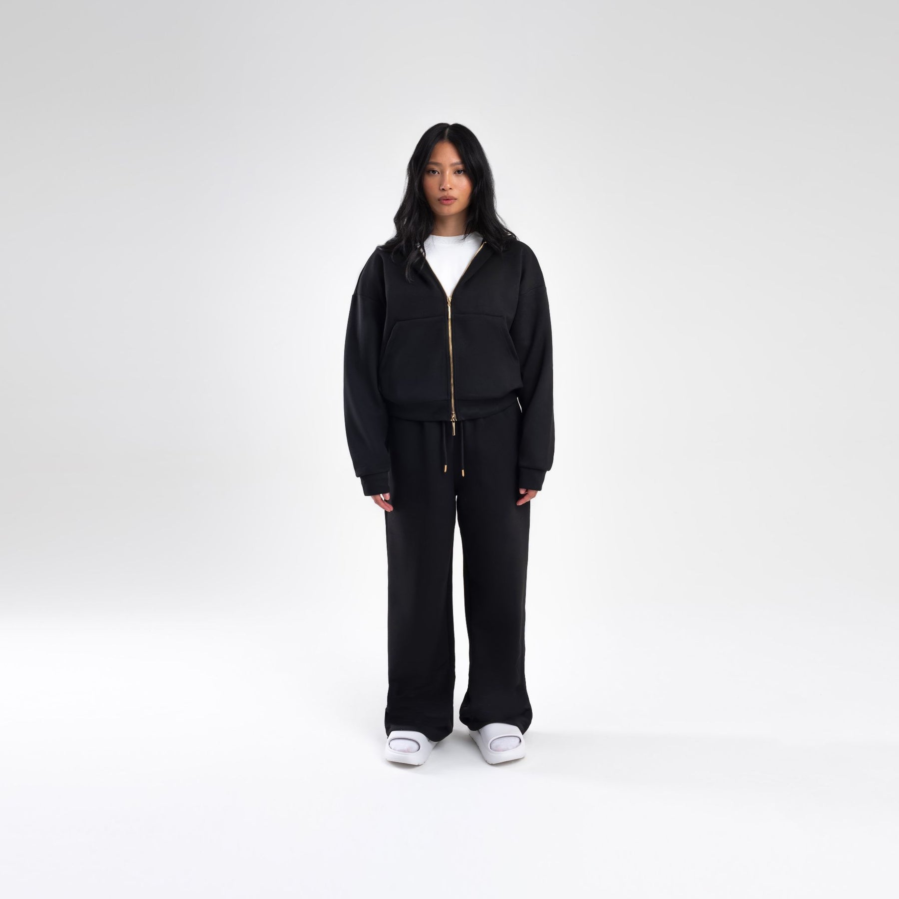 BLACK SCUBA CROP ZIP UP HOODIE